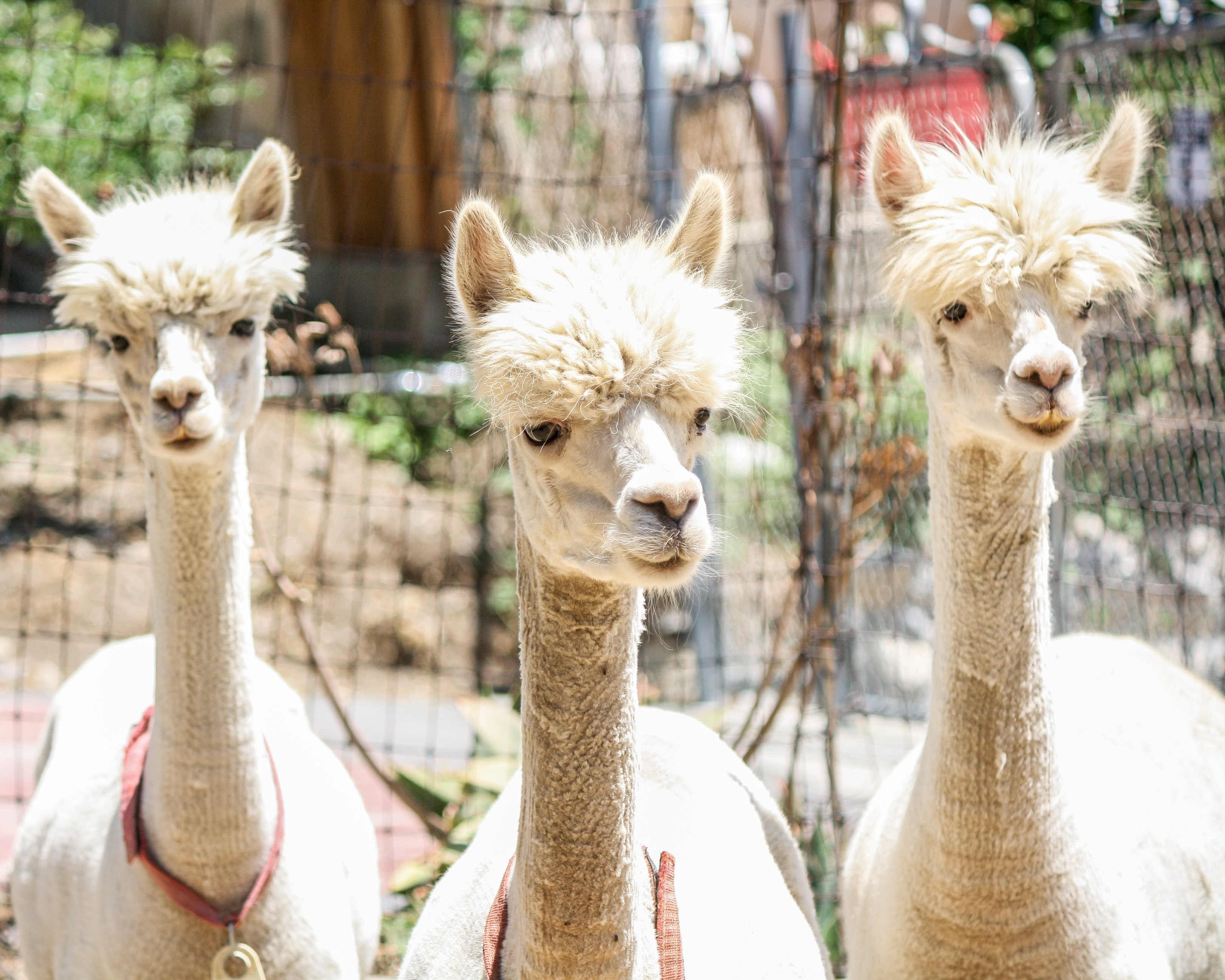 Lets’s start with Tina and her friends., “The Ladies”. A friend of ours had to downsize their alpaca ranch due to health issues and the ladies came to live with us. They love to play in the water, will walk on a leash, don’t mind being petted but hate having their heads touched. Their most endearing quality are their goofy faces! They have to be sheared every year which involves a bit of a wrestling match.