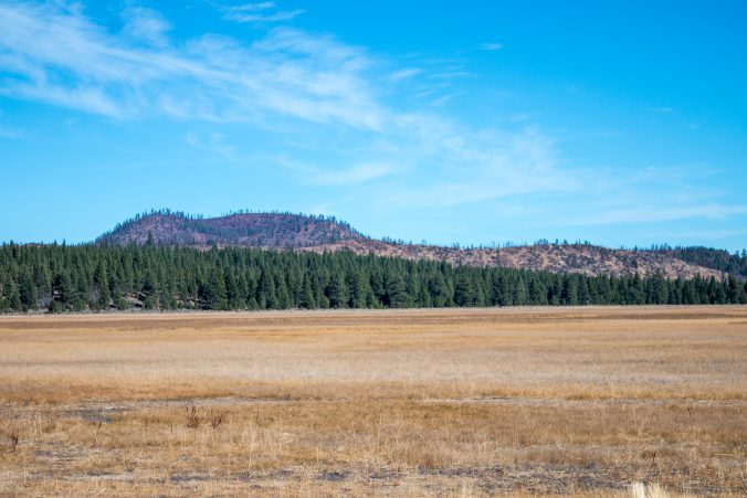 The information kiosks state that the area used to be a lake and there was a popular hotel in the 1900’s but a dynamite blast caused a hole in the lake and all the water drained into the porous volcanic rock below, creating a grassy marsh. It’s dry right now but during the rainy season it becomes a marsh. Every year hundreds of rare spotted salamanders cross the road to get back to the marsh and water birds come to rest.