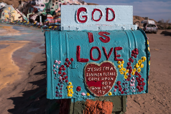 A little way out of town and suddenly there it is, Salvation Mountain.