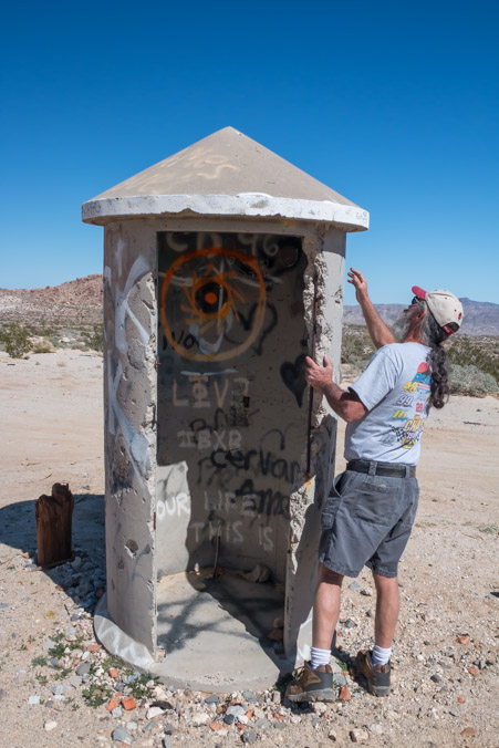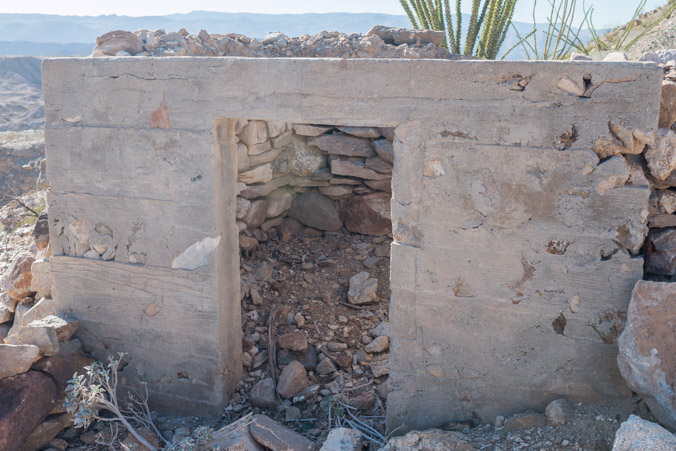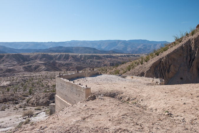 These are the ruins of the Dos Cabezas train station, part of the El Centro to San Diego train line. Hailed as the impossible railroad because of the deep rocky canyons, (one of which was bridged by the Goat Canyon Trestle). This station was a watering stop .