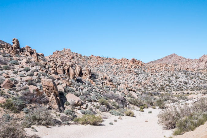 It’s clear that we missed a turn somewhere. We’d intended to get back to the S2 and explore the opposite side of the road but this direction is a dead-end. Time to turn around and head out a the wash the other way.