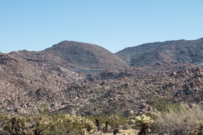It eventually leads down into a gully where we can see Interstate 8 above us in the distance.