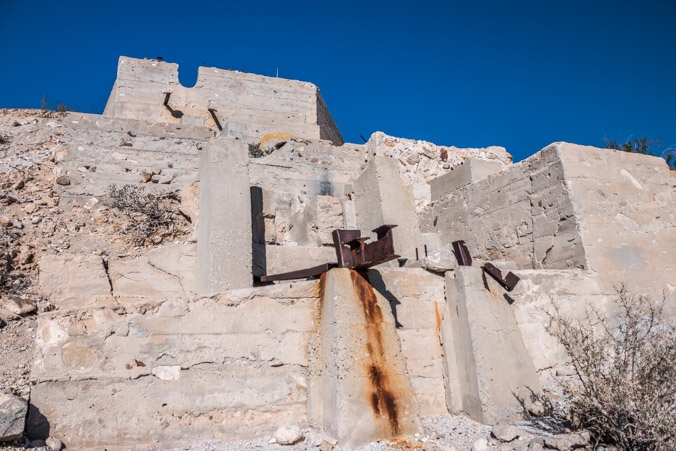Back down the hill and onto another side road called Dolomite mine Road where we find an old dolomite mine and mill ruins which extends across the base of the mountain.