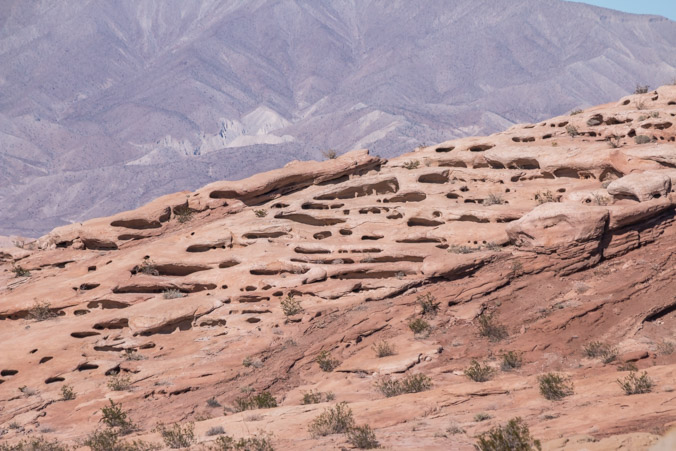 A little minor rock climbing, but a clearly marked road, zig zagging in and out and around the formations. We’re pretty sure this is the road we saw from Fonts Point. It’s seriously the coolest road we’ve ever driven!